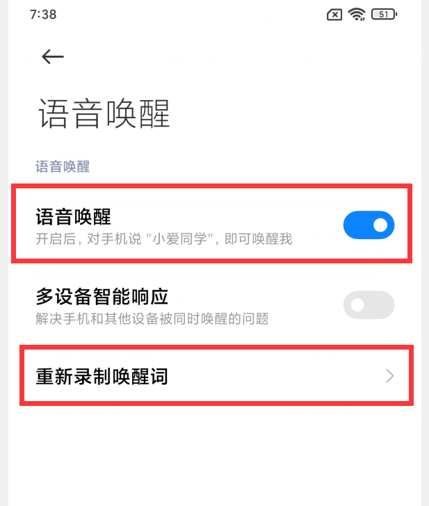 点击“语音唤醒”右侧的开关,把它变成蓝色,就开启成功了,然后按屏幕提示,录制“唤醒词”,你可以以不同音调去录制,录制完成后,就可以使用“小爱截屏”了。